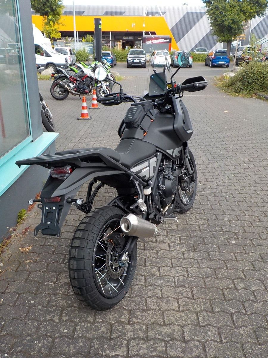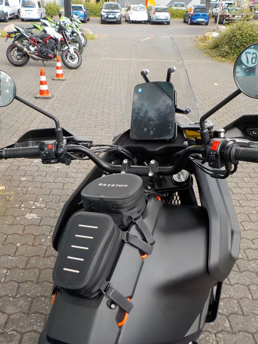 Alles an der Crossfire 500 STORR dient einem Zweck, nichts ist nur Lametta. Die hohe Front verleiht ihr nicht nur einen markanten Auftritt, sondern schützt den Fahrer auch vor Wind und Wetter und bietet optimale Sicht auf den großen TFT-Infobildschirm. Die seitlichen Frontblenden schützen den mächtigen Stahltank und bieten Befestigungsmöglichkeiten für die wichtigsten Reiseutensilien.Dank der schlanken Ergonomie und der nach vorne abfallenden Tankschulter kann man auf Offroad-Etappen bequem stehen und hat ausreichend Bewegungsfreiheit. Am Heck ist ein großer Gepäckträger angebracht und lange Stangen für den Sozius können für verschiedene Gepäckstücke angepasst werden.